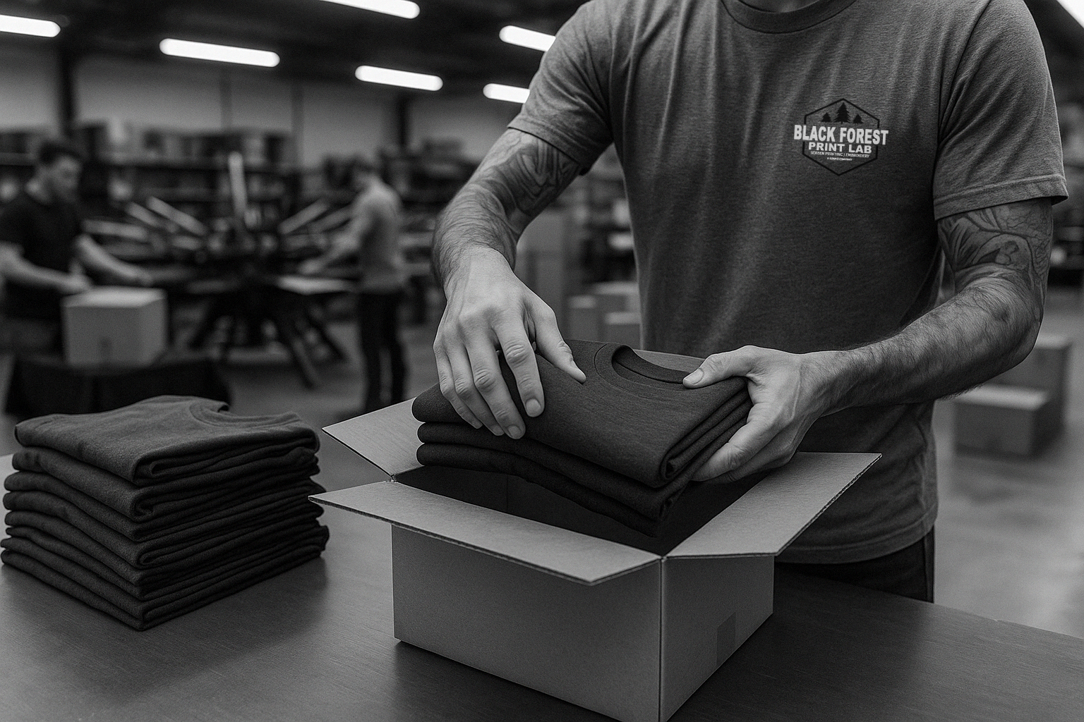 Free design, art prep, and editing with every order. We’ll clean up files, vectorize logos, nail brand colors, and dial placement so what you pictured shows up on the shirt.
